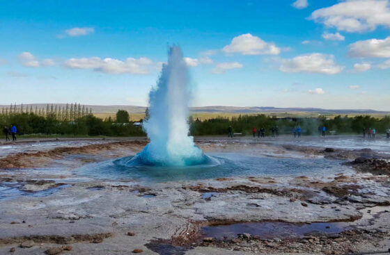Strokkur Geysir, located a convenient 50-minute drive from Reykjavik, is the most famous geyser in Iceland and is known globally. It is a highly active hot spring located near the Hvítá River in the southwestern part of the country and is a popular destination along the Golden Circle route.